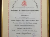 Dr Anand Gupta- Awarded All India "Best Secretary of Indian Medical Association" for the year 2011-2012