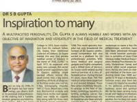 On 29th April 2011 Times of India group owed a gesture of honouring Dr. S.B. Gupta, founder of Aravali Hospital Group ; a multifaceted personality who works with an objective of innovation & versatality in the field of medical treatment; by writing an article on biography of Dr. S. B. Gupta.